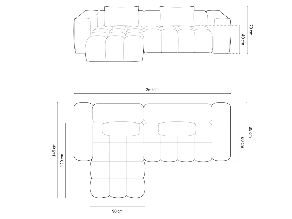 Configuration: canapé d'angle 3 places